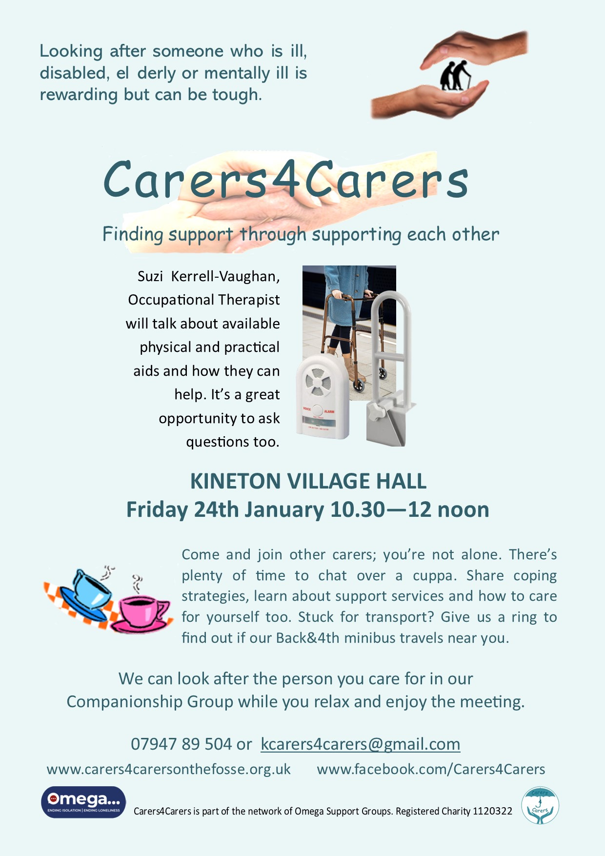 Carers4Carers holds a meeting on the fourth Friday (which isn't always the last!) of the month between 10.30 and 12 noon.